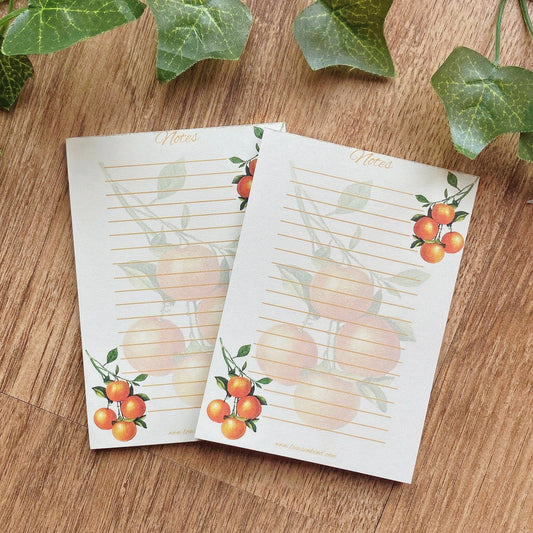 Vintage Orange Botanical Notepad A7, Citrus Fruit Stationery, Cottagecore Memo Pad, Mediterranean Style