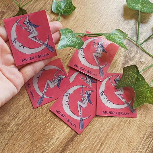 1900 Spanish Mujer Bruja Witch Riding Broom Moon Art Nouveau Vintage Sticker, Antique Celestial Whimsigoth Decal