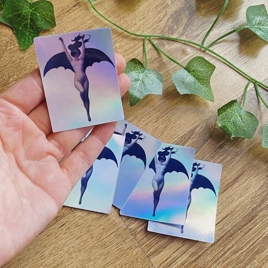 1890 The Bat Woman Holographic Sticker, Albert Joseph Pénot, Mystical Art Decal, Witchy Feminism Sticker