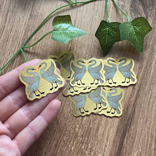 1900 Art Nouveau Swan Pair Decal, Antique Fine Art Decal, Gold Brushed Vinyl Sticker