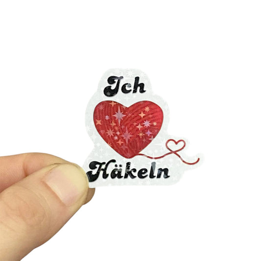 „Ich liebe Häkeln“ Glitzer-Aufkleber