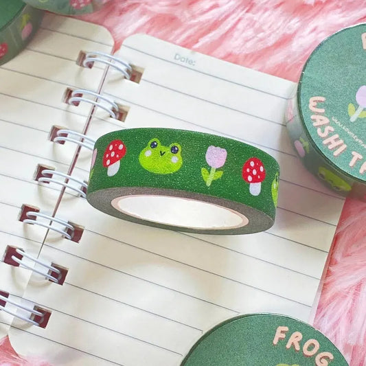 Frog Mushroom Glitter Washi Tape | Cute Kawaii Washi Tape | Adhesive Glitter Tape | Scrapbook Tape