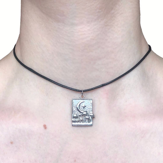 Whimsigoth Fairy Mushroom Moon Necklace