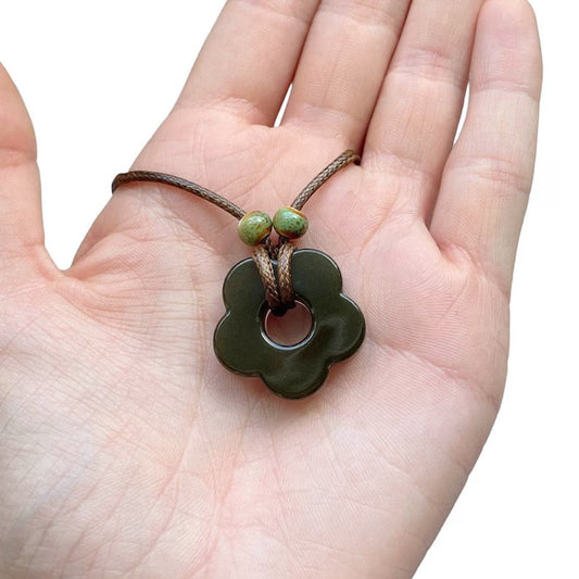 Dark Green Flower Power Hippie Resin Necklace