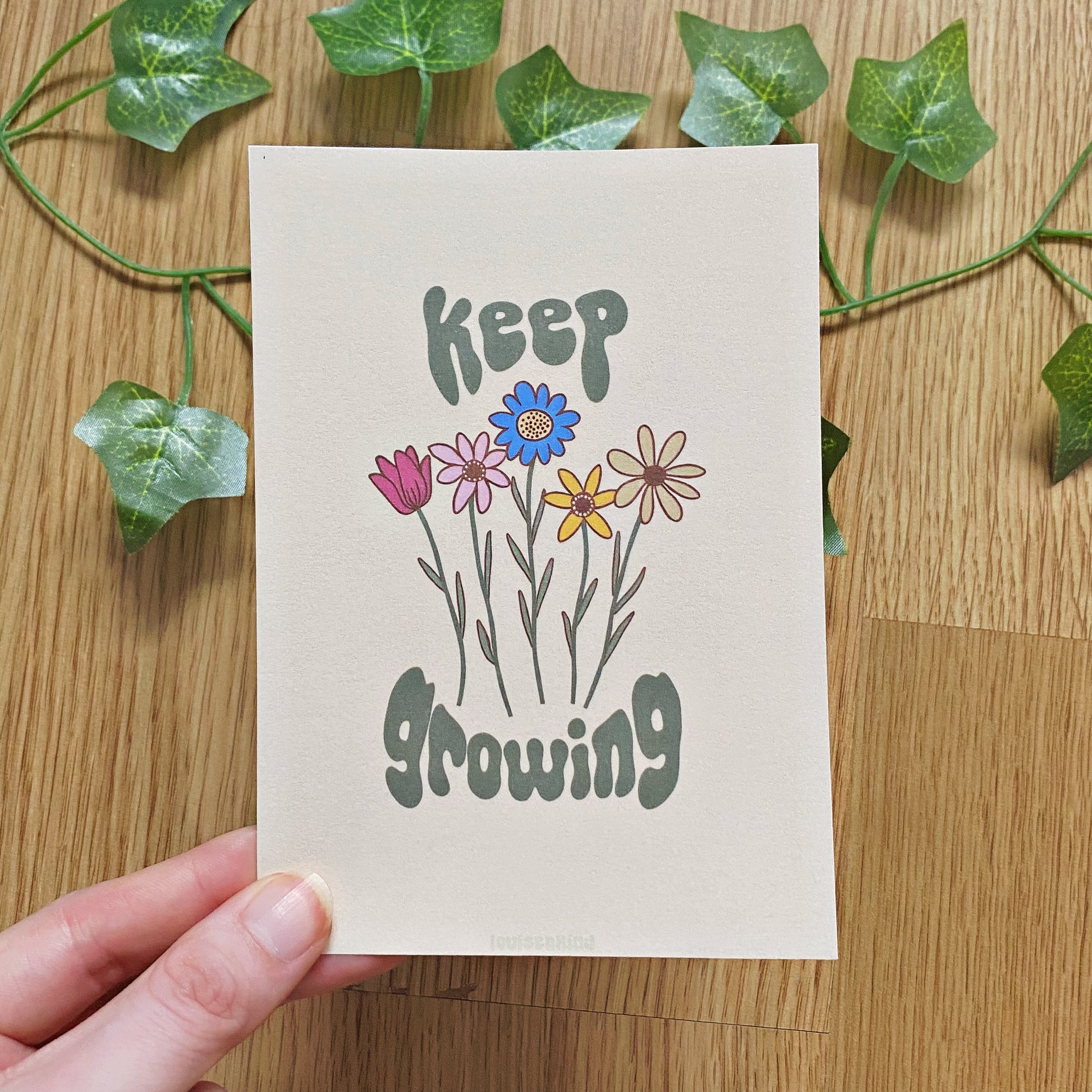 Keep Growing Flower Art Print | Whimsical Wall Art Decor | Mental Health Posters