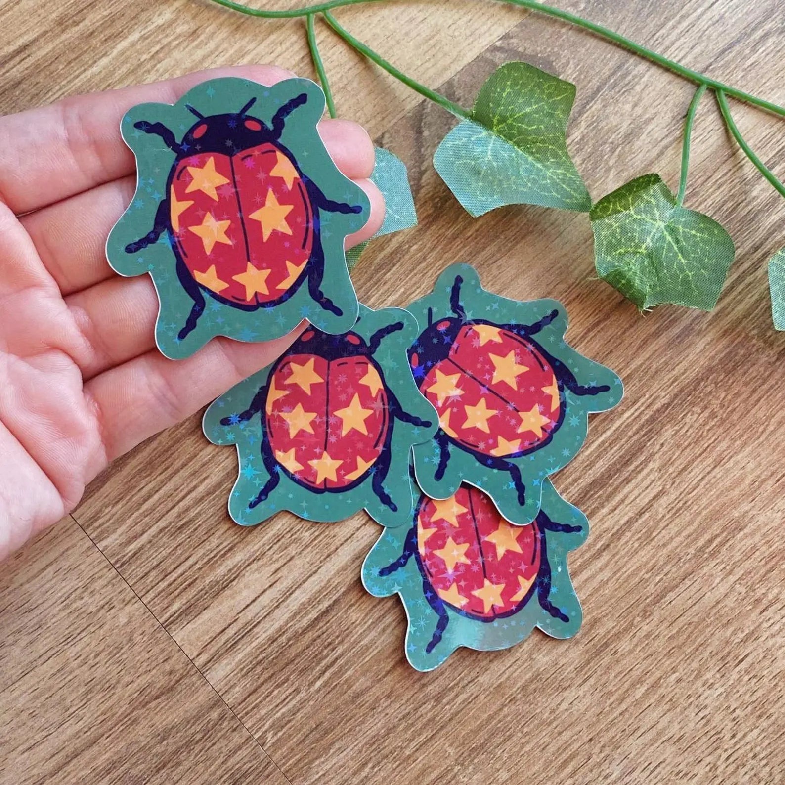 Ladybird Star Bug Glitter Sticker, Whimsical Vintage Inspired Decal, Insect Stickers, Waterproof Weatherproof Decal